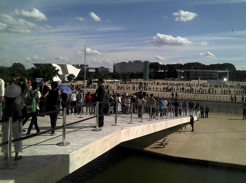 Centenas de pessoas se aglomeram na fila na Praça dos Três Poderes para entrar no Palácio do Planalto, no velório de Oscar Niemeyer.