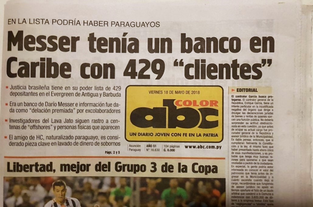 O ABC Color, maior jornal do Paraguai, publica nesta terça-feira reportagem investigativa que revela um suposto banco no Caribe somente com clientes do doleiro foragido Dario Messer – seriam no mínimo 400 grandes clientes, que lavam dinheiro com Messer.