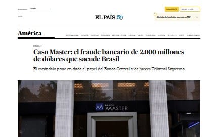 Caso Master-BRB é destaque no jornal El País – Foto: Reprodução