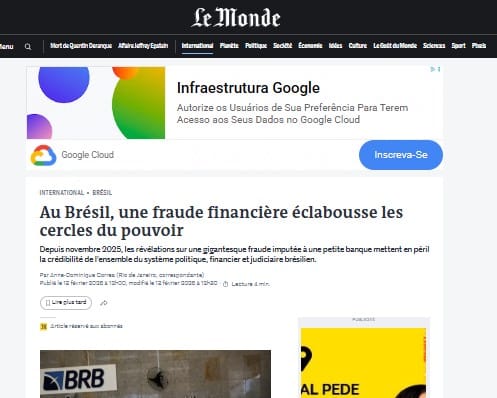 Caso Master-BRB é destaque no Le Monde, na França – Imagem: Reprodução