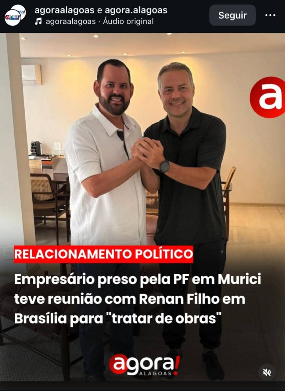 A Polícia Federal prendeu em flagrante na quarta (12) um empresário suspeito de corrupção ativa, dentro da Prefeitura de Murici (AL), administrada por Remi Filho (MDB-AL), sobrinho do senador Renan Calheiros (MDB-AL).